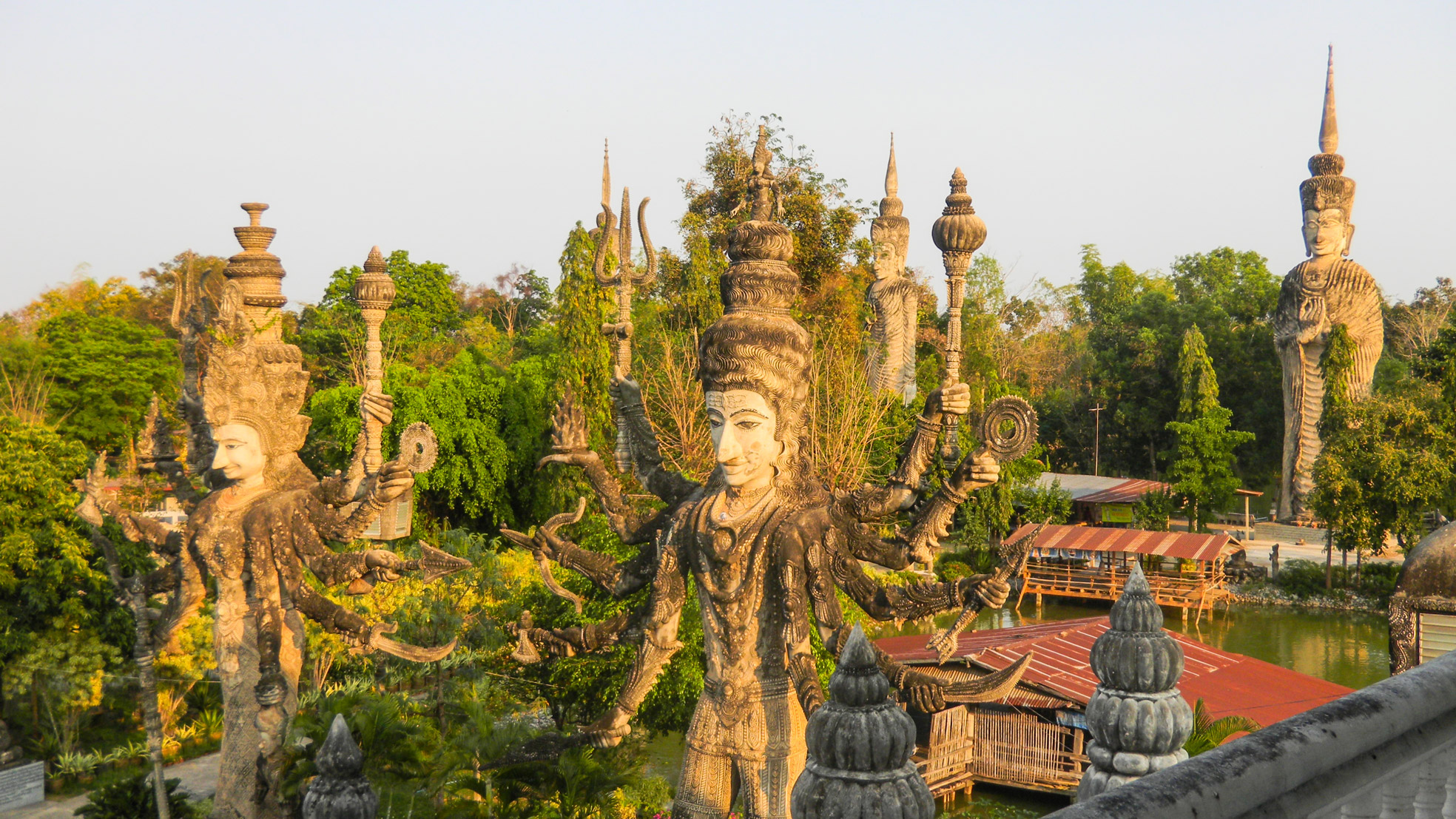 Ce matin, visite du Sala Kaeo Ku, ce parc aux gigantesques statues de Bouddhas et divinités hindous recrée un univers fan-