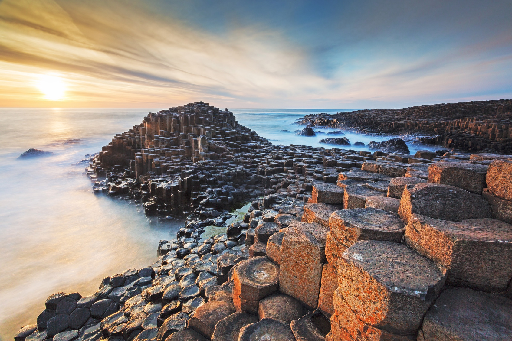 Après le déjeuner, départ via la côte d’Antrim pour la visite de la Chaussée des Géants, une formation volcanique spectaculaire créée par une éruption il y a environ 60 millions d’années, et entourée de légendes celtiques. Dîner en cours de route et continuation vers Derry pour une visite guidée de la ville fortifiée. Souper et nuit autour de Derry ou Letterkenny. (PD, D, S)